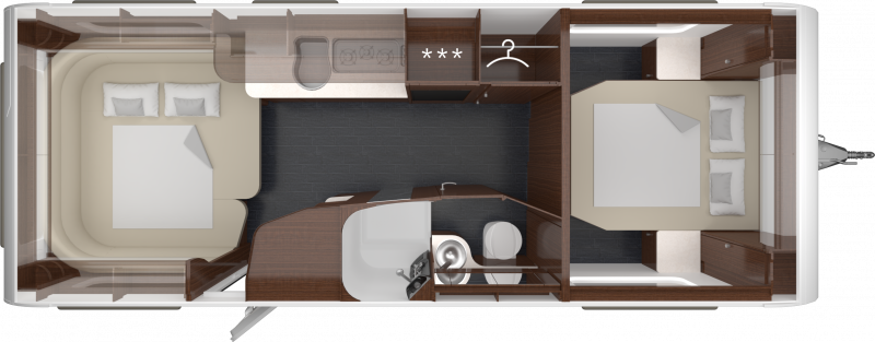 Denna husvagnsmodell är uppkallad efter kompositören Giacomo Puccini, känd för sina fantastiska verk. Puccini utmärker sig med exklusiva silverfärgade ramar längs taket och eleganta LED-lampor baktill.